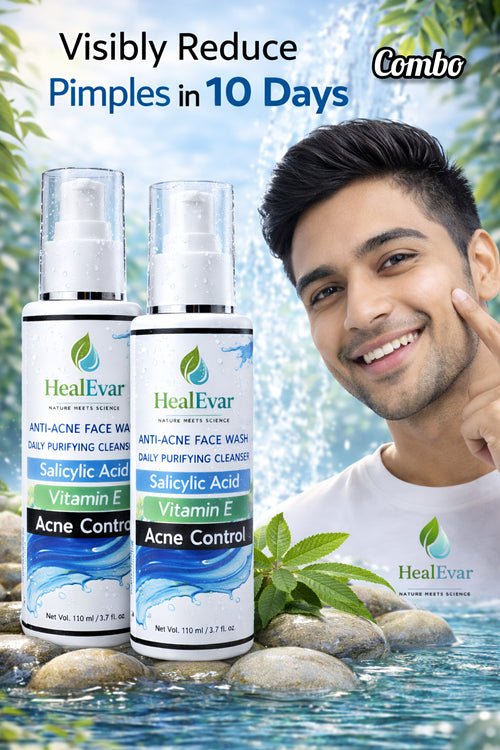 HealEvar Face & Body Care Combo – Anti-Acne Face Wash + Magical Almond Scrub Soap | Clear & Bright Skin